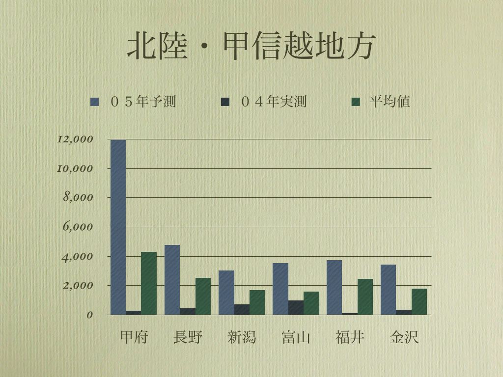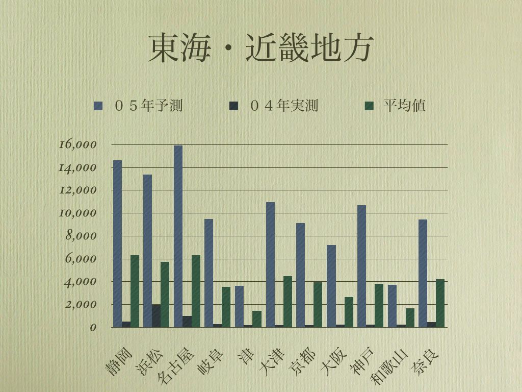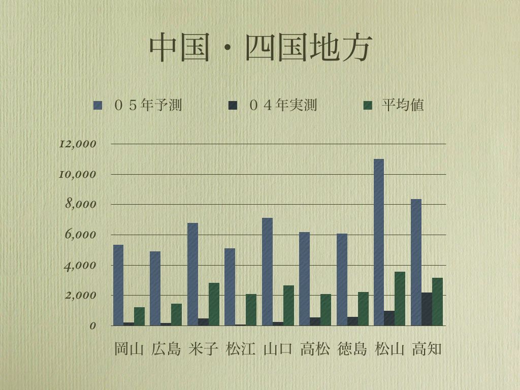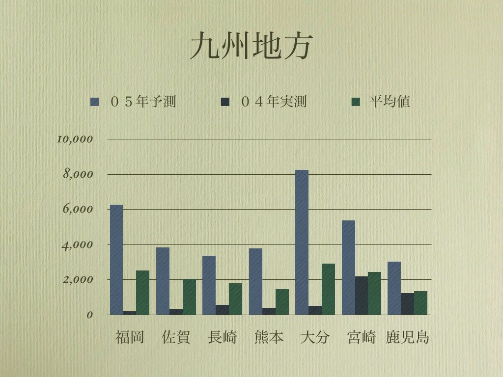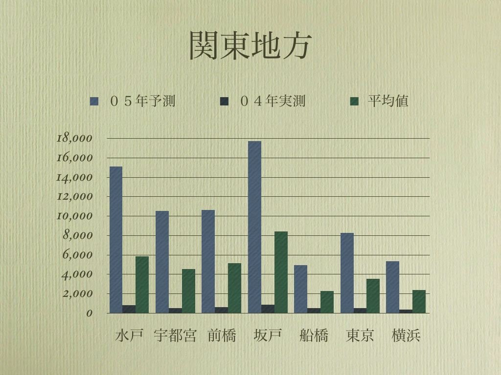 | NPO花粉情報協会による、全国各地の2005年のスギ・ヒノキ科花粉の飛散予測です。 (2005.1.31) |  |