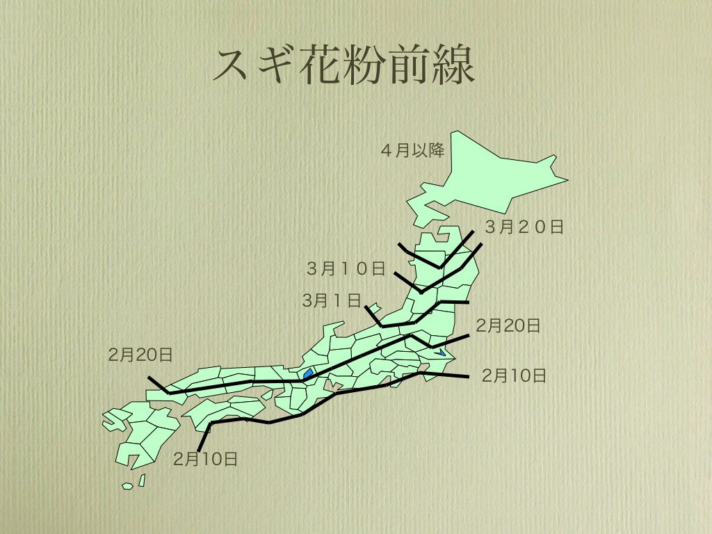 東海地方の飛散開始は1月下旬から2月中旬で、10,000個/平方センチを超える地方もあり、5月連休頃まで続く見込みです。